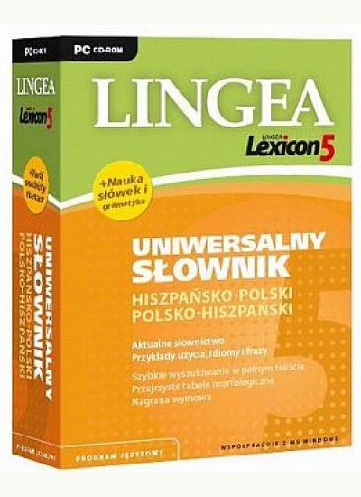 Lingea Lexicon 5. Uniwersalny słownik hiszpańsko-polski i polsko-hiszpański zawiera około 40 000 haseł, liczne przykłady, związki frazeologiczne oraz tabele odmian. Umożliwia odsłuchanie prawidłowej wymowy, zawiera zarys gramatyki, słownik użytkownika i rozbudowany słownik tematyczny. Lexicon 5 doskonale sprawdzi się w instytucjach szkolnych, państwowych oraz w firmach.