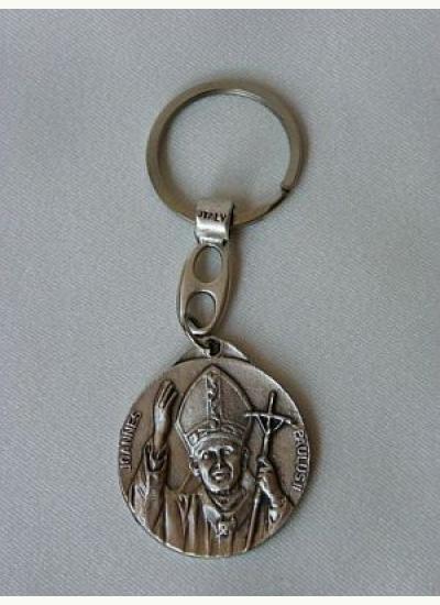 Brelok metalowy włoski z wizerunkiem Jana Pawła II i św. Krzysztofa na rewersie