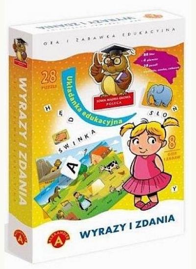 Wyrazy i zdania to świetna zabawa i jednocześnie pomoc dydaktyczna dla dzieci w wieku przedszkolnym. W pudełku znajdują się 4 plansze przedstawiające różne scenki tematyczne. Dzieci podczas zabawy wyciągają z planszy bohaterów obrazka i układają z liter pasujące do nich wyrazy - podpisy. W zależności od umiejętności mogą robić to samodzielnie lub korzystając z podanego na planszy wzoru. To świetny sposób na stopniową naukę rozpoznawania i zapamiętywania liter, układania wyrazów i zdań. Inne warianty gier i zabaw rozwijają spostrzegawczość, koncentrację oraz umiejętność czytania.
