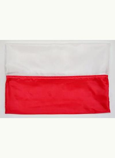 Flaga narodowa o wymiarach 70x112 cm z zaślepionym tunelem na maszcik o średnicy 20–25 mm.