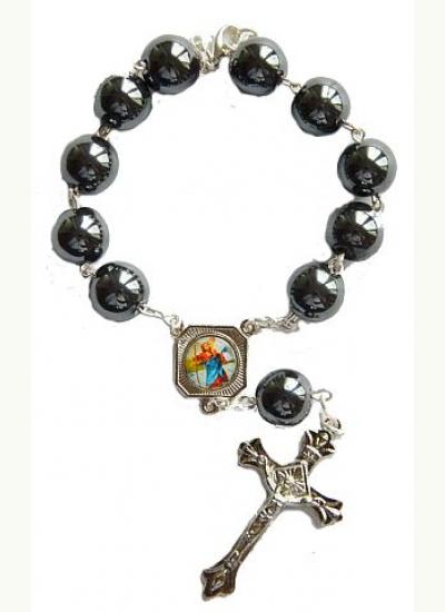 Różaniec hematytowy grafitowy Św. Krzysztof dziesiątka kulka