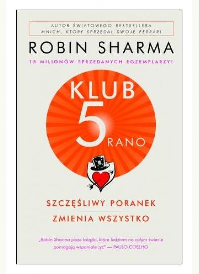 Robin Sharma, autor bestsellera Mnich, który sprzedał swoje Ferrari jest jednym z czołowych guru rozwoju osobistego na świecie. Jego książki sprzedały się w nakładzie 15 milionów egzemplarzy. Z rad Sharmy korzystały takie firmy jak Microsoft, NASA, Nike czy FedEx. W książce Klub 5 rano Sharma przedstawia autorskie sposoby zmniejszenia stresu, poprawy koncentracji, uwolnienia kreatywności i przywrócenia równowagi między pracą a życiem osobistym. Jego metody zostały wypracowane w trakcie wielu lat praktyk z ludźmi, którzy odnieśli największe sukcesy na świecie. Teraz Sharma dzieli się swoimi spostrzeżeniami i narzędziami, opierając się na kluczowym założeniu, że wygrywanie zaczyna się o świcie.