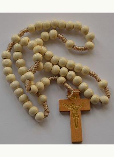Różaniec drewniany na sznurku, krótki rozmiar, kolor beżowy