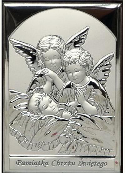 Obrazek srebrny ANIOŁY - Pamiątka Chrztu Świętego