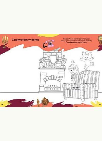 Ukryty w okładce kartonowy szablon z ponad dwudziestoma wzorami pozwoli uzupełnić karty tej książki postaciami Maszy i Niedźwiedzia i wieloma elementami dekoracyjnymi – od pięknych ramek aż po serca, gwiazdy i śnieżynki.