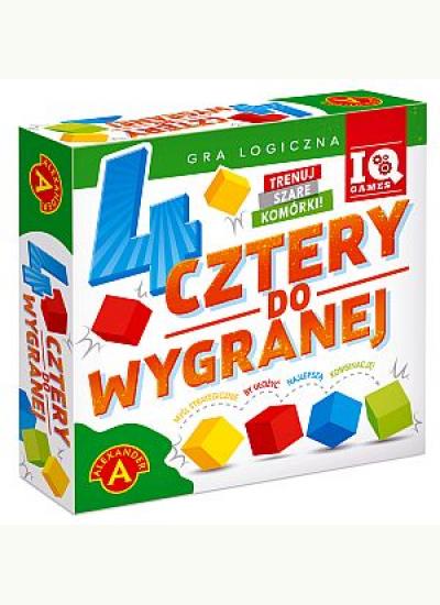 ,Cztery do wygranej to oparta na prostych zasadach gra, która dostarczy satysfakcji każdemu. Do dyspozycji mamy 25 kości w pięciu kolorach. Zabawa polega na losowym bądź wskazanym w instrukcji ułożeniu ich na matrycy. Następnie każdy z graczy wybiera kolor swoich kości. Od tego momentu musimy ułożyć cztery kości w swoim kolorze w linii prostej, wzdłuż, w poprzek lub po przekątnej. Liczy się także ułożenie kości w kwadracie obok siebie. Ruchy wykonujemy zamieniając miejscami swoje kości z kośćmi w innym kolorze. Trudności całej operacji dodaje fakt, że nie wolno przestawiać nam kości przeciwnika. 3 warianty gry sprawią, że nigdy się nie znudzisz.