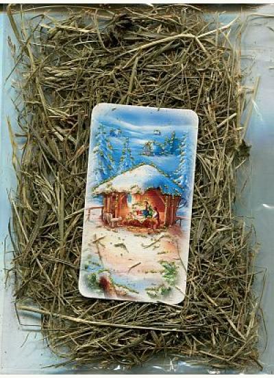 Sianko wigilijne w woreczku o wymiarach: 12x10 cm. W woreczku foliowym razem z siankiem znajduje się obrazek świąteczny.