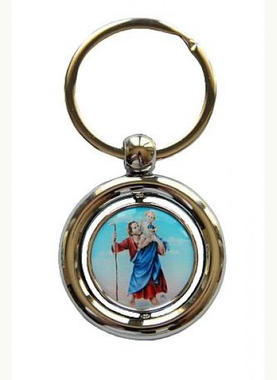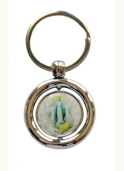 Brelok metalowy obrotowy z wizerunkiem Niepokalanej i św. Krzystofa