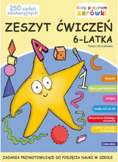Zeszyt ćwiczeń 6-latka został opracowana zgodnie z podstawą programową do pracy dydaktycznej w przedszkolu. Książka zawiera kilkaset ćwiczeń i zadań edukacyjnych, przygotowujących dziecko do rozpoczęcia nauki w szkole. Książka podzielona jest na sześć rozdziałów tematycznych. Metodą atrakcyjnych kolorowanek edukacyjnych i ćwiczeń aktywizujących, ta wartościowa publikacja przygotuje dziecko do sztuki pisania, nauczy je alfabetu i pozwoli mu odczytywać proste słowa, przybliży mu pojęcie figur geometrycznych, nauczy je liczyć do 10 i dodawać na zbiorach, wreszcie rozwinie w nim umiejętność rozumienia bliskiego otoczenia i logicznego myślenia.