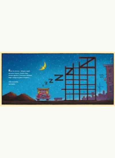 Ogromne maszyny z placu budowy przez cały dzień woziły, podnosiły, mieszały i przerzucały. Okropnie się zmęczyły… A przecież nawet najwięksi twardziele mają ochotę zgasić wieczorem światła i wyłączyć silnik. Dźwig zasypia z pluszowym misiem, wywrotka pochrapuje, betoniarka przykrywa się kołderką… Ta niezwykła kołysanka utuli do snu każdego małego kierownika i kierowniczkę budowy. Wielu rodziców i dziadków wykrzyknie: „Nareszcie!“.