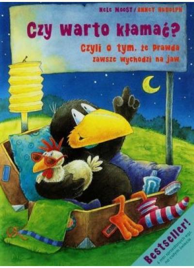 Każdy wie, że nie wolno kłamać - wie również to i mały kruk. Ale zdarzają się takie sytuacje, że kłamstwo nasuwa się samo. A gdy się już zaczęło kłamać, dość trudno jest z tym skończyć. Kruczek, dzik, borsuk i miś Edzio jadą na wakacje do cioci dzika na wieś. Okazuje się, że zabrali ze sobą potajemnie wszystkich przyjaciół. Trzeba ich teraz przemycić, ukryć, nakarmić i znaleźć dla nich miejsce do spania. Mały kruk już w pociągu uczy wszystkich, jak się buja ciocię. Ale czy jest to dobre rozwiązanie? Przekonajcie się sami, czytając tę przezabawną historię! Bestsellerowa seria książek Nele Moost o przygodach małego kruka. Dopełnieniem humorystycznych opowiadań są barwne i szczegółowe ilustracje Annet Rudolph. Bohaterem serii jest mały kruk Skarpetka. Choć nie zawsze postępuje zgodnie z ogólnie przyjętymi normami, to bardzo chętnie je poznaje. Każde opowiadanie zawiera cenny morał, mały kruk m.in. uczy się, jak być najgrzeczniejszym zwierzątkiem w całym lesie, oraz poznaje wartość przyjaźni. Książki o małym kruku cieszą się niesłabnącym powodzeniem. Opowiadania, przetłumaczone na wiele języków, zdobyły już rzeszę fanów. Mali czytelnicy mogą utożsamić się z niesfornym krukiem, zdobywając jednocześnie cenną wiedzę. Zapraszamy do świata Skarpetki. Gwarantujemy świetną zabawę przy lekturze!