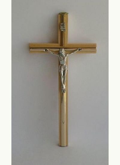 Krzyż drewniany jasny z paskiem 16 cm, ścienny.