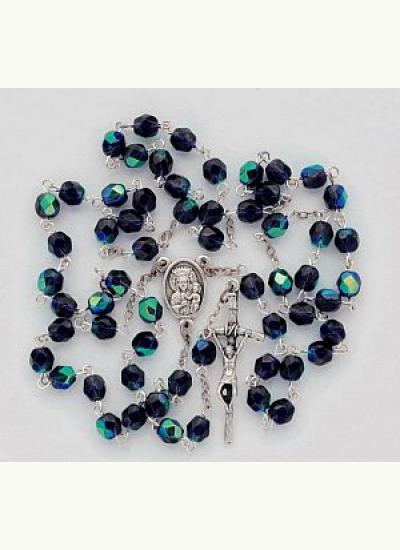 Różaniec kryształkowy granatowy opalizowany
