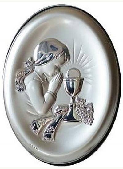 Obrazek srebrny owalny dziewczynka - Pamiątka Pierwszej Komunii Świętej