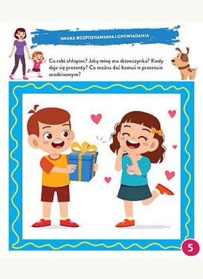 Zakres tematyczny zadań: pory roku, poznawanie zwierząt, zabawa w domu i na placu zabaw, życie na wsi, przyjęcie urodzinowe, rośliny, nauka higieny, warzywa i owoce, zdrowe jedzenie, zawody (lekarz, strażak, weterynarz), pojazdy, morze i plaża, ubiór,